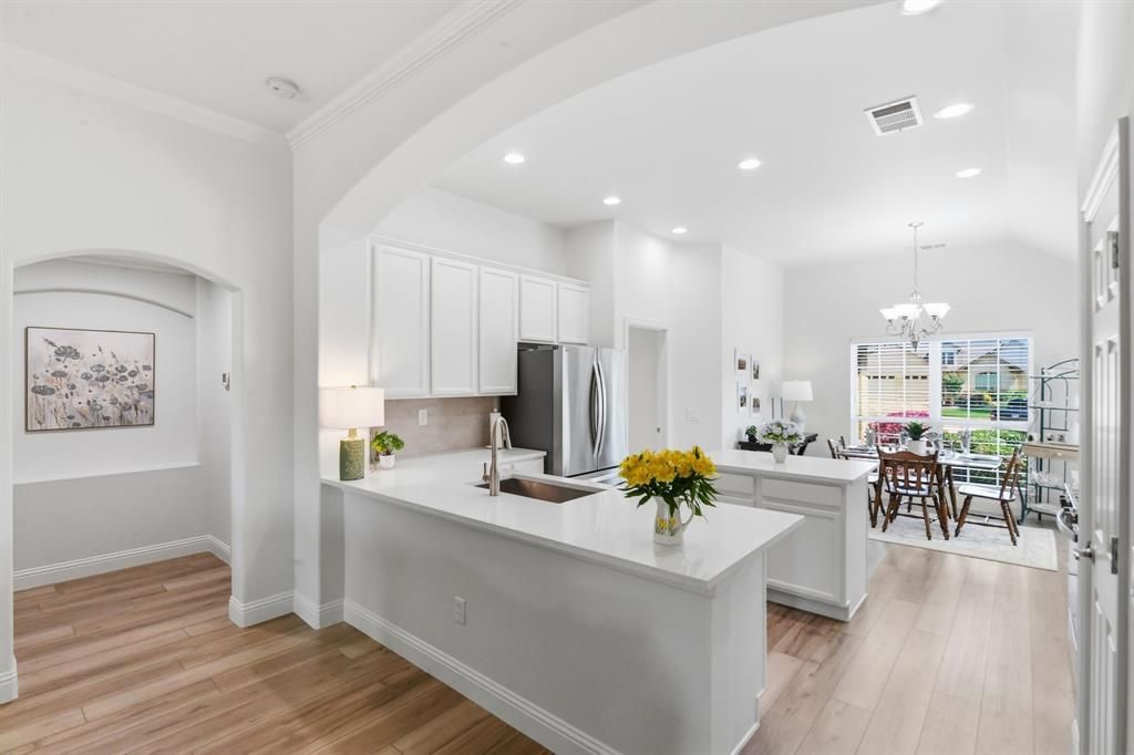 Completely remodeled and meticulously maintained, this one-owner home sits on a rare oversized corner lot in the highly sought-after Robson Ranch. Offering enhanced privacy, standout curb appeal, and additional outdoor space, this homesite is ideal for relaxing or entertaining.Located just south of Denton with convenient access to I-35W and the greater Dallas–Fort Worth area, the community offers a true resort-style lifestyle. Residents enjoy championship golf, multiple clubhouses, pools, fitness centers, and a full calendar of activities, including pickleball, tennis, dining, and social clubs.This is a rare opportunity to own a fully updated home on one of the larger corner lots in Robson Ranch—combining quality, space, and an active 55+ lifestyle in one of North Texas’ premier communities.