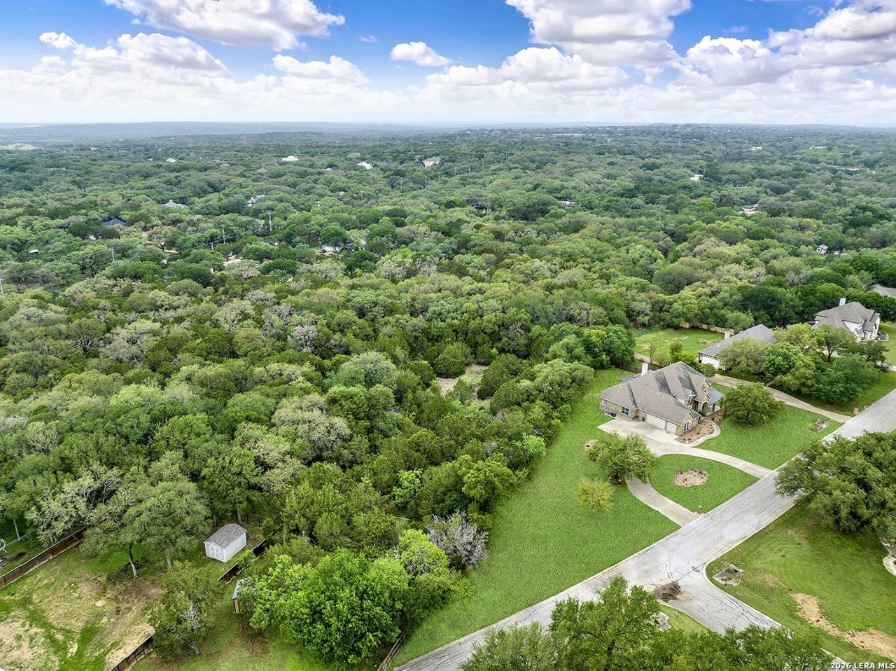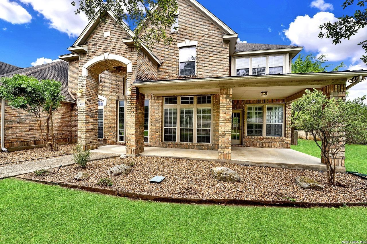 Stunning executive home nestled on a large, private greenbelt lot in the peaceful community of Garden Ridge! Fresh interior paint and brand-new carpet throughout make this home truly move-in ready * From the moment you arrive, the impressive 8-foot front door and great-sized covered front porch welcome you into a beautifully appointed interior featuring rich wood flooring, crown molding, tray ceilings, and a dramatic double iron baluster staircase * The upgraded gourmet island kitchen is designed to impress, boasting newer stainless steel appliances, refrigerator, solid surface countertops, custom cabinetry, breakfast bar, double sinks, an extra-large island, and abundant cabinet space-perfect for both everyday living and entertaining * The spacious family room features soaring ceilings, a cozy fireplace, and custom built-ins that create a warm and inviting atmosphere * This thoughtfully designed floor plan offers two primary suites on the first floor, including a luxurious main suite with a corner soaking tub, extended walk-in shower, dual vanities, and ceramic tile flooring * A secondary downstairs bedroom with its own private bath adds flexibility for guests or multigenerational living. Upstairs, enjoy a huge game room along with additional bedrooms, providing ample space for everyone * Work from home comfortably in the large study with built-in bookshelves, or relax year-round in the bright Florida room overlooking the serene backyard. Step outside to the covered patio and enjoy the privacy of the mature landscaping and greenbelt setting-ideal for outdoor gatherings * Additional highlights include a 3-car oversized garage with tiled floors, circular driveway with extra parking, sprinkler system, spacious laundry room with utility sink * With 5 bedrooms, 3.5 bathrooms, and an abundance of upgrades throughout, this exceptional Garden Ridge home offers luxury, comfort, and privacy in a truly desirable setting.