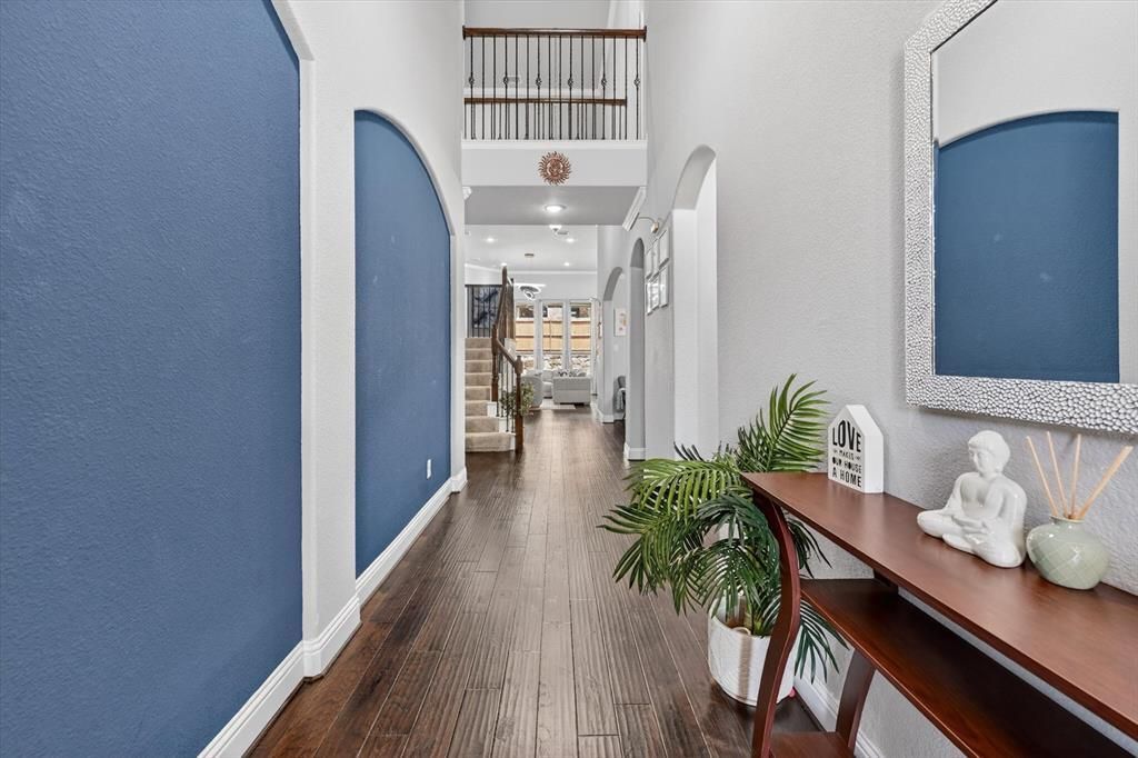 Immaculate sweet Family home well taken care of Updated and Upgraded as modern style contemporary kitchen with painted cabinets designer quartz countertop. Soothing combination of custom colors compliments the daylight entering the house through large windows in the central living area. Crown moldings white throughout. Elevation has natural stone reflects the impression of exterior character. LISD middle schools within walking distance. Centrally located and easy access to major freeways. This well-maintained property with such openness of this in Law suite floor plan featuring 2 bedrooms with 2 bedrooms downstairs, designated private study for professional to work remote jobs and spacious foyer with high ceiling. The main living area with fireplace, Backyard perfect for entertaining family and friends. Enjoy community pool, upstairs media and game room providing plenty of space for family and guests. The primary suite features a luxurious bath with garden tub, separate shower, and a spacious walk-in closet. Entertainment within minutes of drive to DFW airport, Grand Escape shopping, legacy west dining, hospitals. Residents enjoy morning and evening walks with your lovely pets and seating and play area for kids and toddlers, perfect for summer. All in one package deal. Don’t miss this opportunity. Pics coming soon.