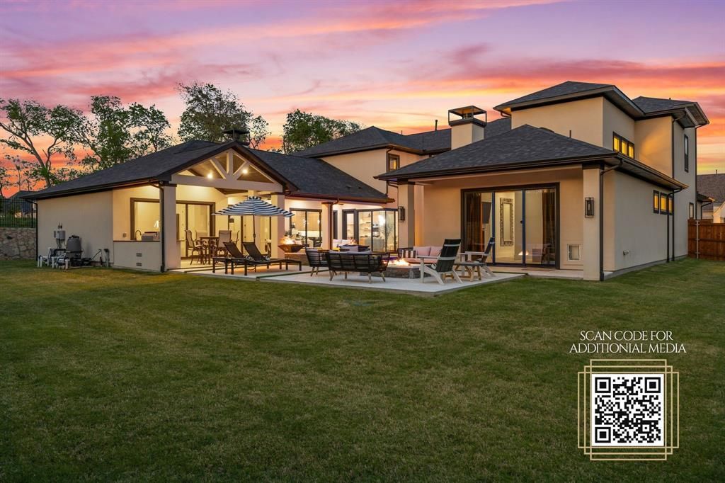 MODERN MASTERPIECE IN THE EXCLUSIVE PINNACLE AT WINDSONG RANCH-- Situated on one of just 40 half-acre estate lots in Prosper’s premier, award-winning master-planned community, 381 Spade Ranch is tucked away on a quiet cul-de-sac and sides to a serene greenbelt with mature trees—where whimsical fireflies glow on warm summer evenings, creating a truly magical setting. Step inside to a dramatic two-story foyer framed by walls of windows overlooking the resort-style backyard. The outdoor living space is exceptional, featuring a modern geometric pool with spillover spa, tanning ledge, and water feature wall with fire bowls. Multiple covered patios, an outdoor kitchen, and a firepit create the perfect setting for entertaining or relaxing while enjoying stunning Texas sunsets. The expansive yard offers ample space for a sport court or putting green! Inside, the home is thoughtfully designed for everyday living and entertaining. The chef’s kitchen is anchored by an oversized center island with two refrigerated drawers, double ovens, a 6-burner gas range with griddle and pot filler, and abundant custom cabinetry. Just off the dining area, a dedicated wine room with beverage fridge adds convenience and style. The downstairs entertainment room with pool bath is ideal for game days or movie nights and features 9-foot sliding doors that open to the covered patio, creating seamless indoor-outdoor living. The primary suite is a luxurious retreat with a fireplace, private patio access, and a spa like ensuite featuring two-story ceilings, a soaking tub, a walk-through shower with dual shower heads, and separate vanities. The first floor also includes a private office with built-in shelving and a guest suite with full bath. Upstairs, two additional bedrooms with ensuite baths are complemented by a spacious entertainment room with its own half bath. Other highlights include a central vacuum system, two walk-in attic spaces, and an oversized three-car garage with room for a golf cart.