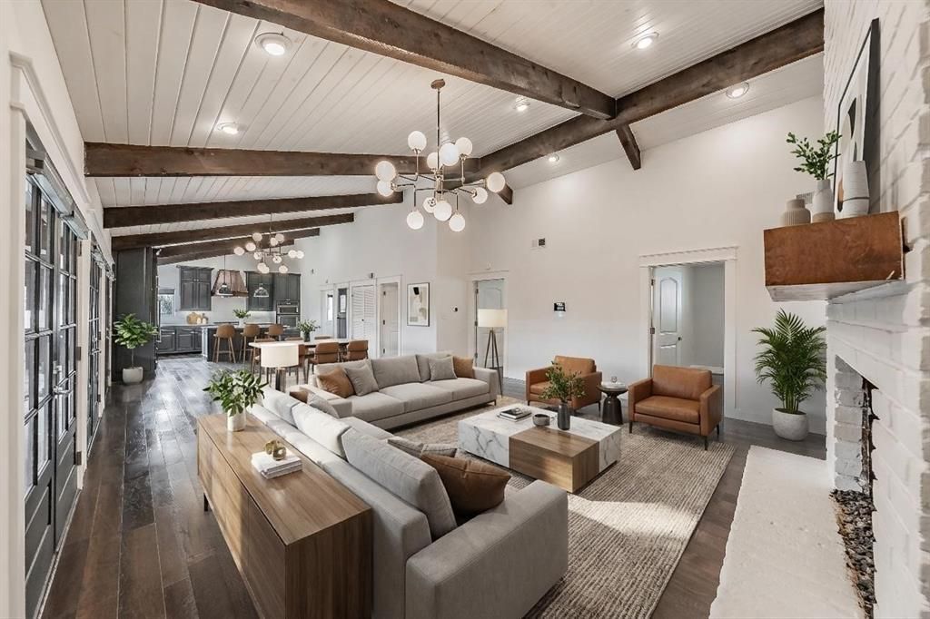 Extensively remodeled in 2018, this beautifully updated home blends striking architectural character with modern finishes and a stunning open-concept layout.The dramatic main living space features soaring vaulted ceilings with exposed beams, white plank ceilings, and a statement fireplace, creating a warm and inviting setting filled with natural light. The oversized living area flows seamlessly into the kitchen and dining spaces, making the home ideal for both entertaining and everyday living.The kitchen serves as the centerpiece of the home and features quartz countertops, custom cabinetry, a large island, and a custom copper vent hood. The KitchenAid appliance package includes a built-in commercial-style side-by-side refrigerator, gas cooktop, and microwave-oven combination.Multiple French doors line the living area and open to the long covered patio, creating an easy indoor-outdoor connection and extending the entertaining space.The spacious primary suite offers a relaxing retreat with a beautifully updated bath featuring dual vanities, designer fixtures, and a walk-in shower.As part of the renovation, the home received extensive interior updates including wood floors, remodeled bathrooms, designer lighting, and updated plumbing and electrical components. The HVAC system was replaced in 2021 and recently serviced. The roof was inspected in 2026 and reported to be in great working condition.Conveniently located near Central Market and the Hulen area with easy access to shopping, dining, and major routes.Some photos may include virtual staging to illustrate potential furniture placement.