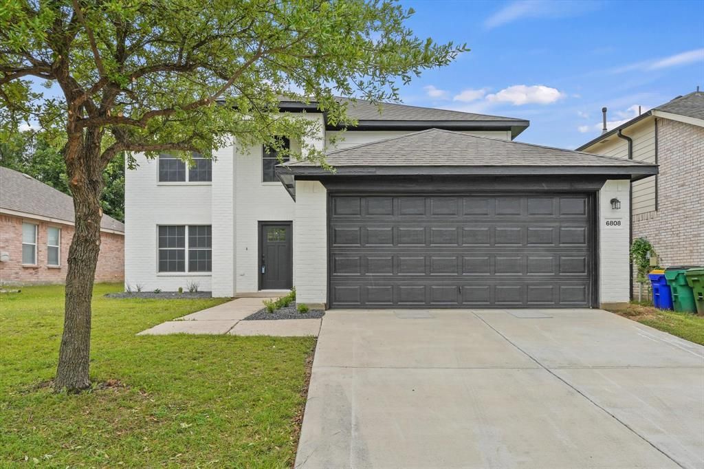 Completely remodeled and move-in ready, this stunning 5-bedroom home in Watauga features a modern design inside and out. The freshly painted brick exterior with bold black accents creates incredible curb appeal, while the interior offers a bright, open layout with wide-plank flooring and clean, contemporary finishes throughout. The stylish staircase with custom railing adds a high-end touch, and the updated kitchen opens seamlessly to the living space perfect for entertaining. Bathrooms have been fully upgraded with sleek fixtures and modern vanities, and the spacious layout provides flexibility for families, guests, or a home office.Located in a quiet, established neighborhood, this home offers quick access to major highways including 820 and 377, making commuting to Fort Worth, Keller, and surrounding areas easy. Enjoy being just minutes from shopping, dining, parks, and highly rated schools, all while tucked into a convenient and central DFW location. With a 2-car garage and a large backyard, this home combines design, space, and location in one exceptional opportunity.